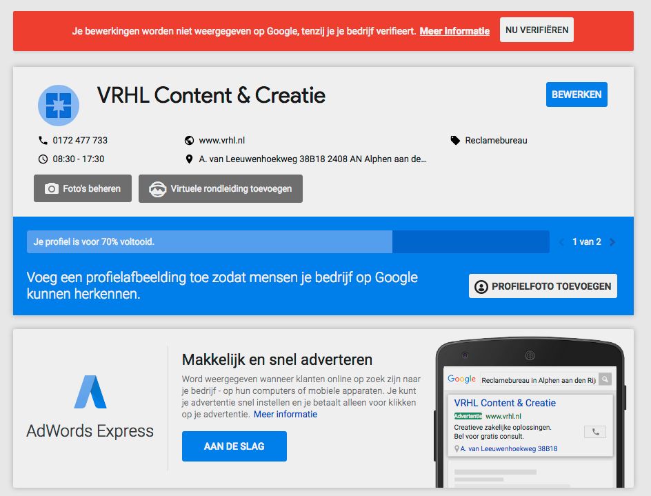 5. Na goedkeuring zal je aanvraag verwerkt worden in Google, maar ook op websites zoals www.detelefoongids.nl en www.openingstijden.nl.