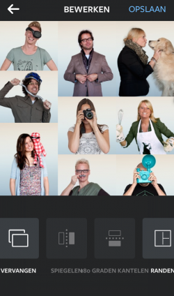 Wil je een fotocollage maken? Gebruik dan de app Layout! Hierin selecteer je zelf foto’s (tot een maximum van negen), waarna ze automatisch bij elkaar worden gezet. Vervolgens kies je de layout die jou het meest aanspreekt. Je kunt de positie van de foto’s nog veranderen, de foto’s spiegelen, draaien, inzoomen, uitzoomen en eventueel vervangen. Leuke voorbeelden om deze app te gebruiken zijn om een verzameling werk bij elkaar te zetten, een samenvatting van je (werk)dag af te beelden of de werknemers van je bedrijf in een collage te zetten (zoals ik in het voorbeeld hieronder heb gedaan).