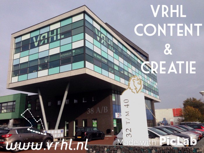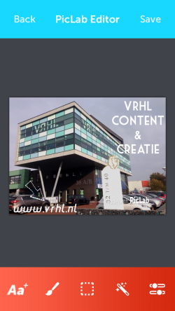 Met PicLab tover je jouw foto om tot een ansichtkaart. Je kunt je foto’s bewerken met verschillende filters. Er is keuze uit meer dan honderd texturen, vormen en effecten. Daarnaast kun je typografie toevoegen waarbij je de grootte, de kleur en het lettertype naar wens kunt aanpassen. De teksten en filters worden in lagen aan de foto toegevoegd, waardoor je ze steeds een voor een kunt blijven aanpassen. Deze app is bijvoorbeeld leuk om te gebruiken voor het in beeld brengen van je bedrijfspand, zoals ik het voorbeeld hieronder voor VRHL heb gedaan.