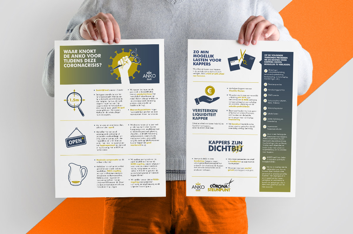 De ANKO (branchevereniging voor kappers) wilde haar leden laten zien waar zij allemaal voor lobbyt tijdens de coronacrisis. Daarom liet de ANKO ons alle topics visualiseren. Zie hieronder het resultaat.
