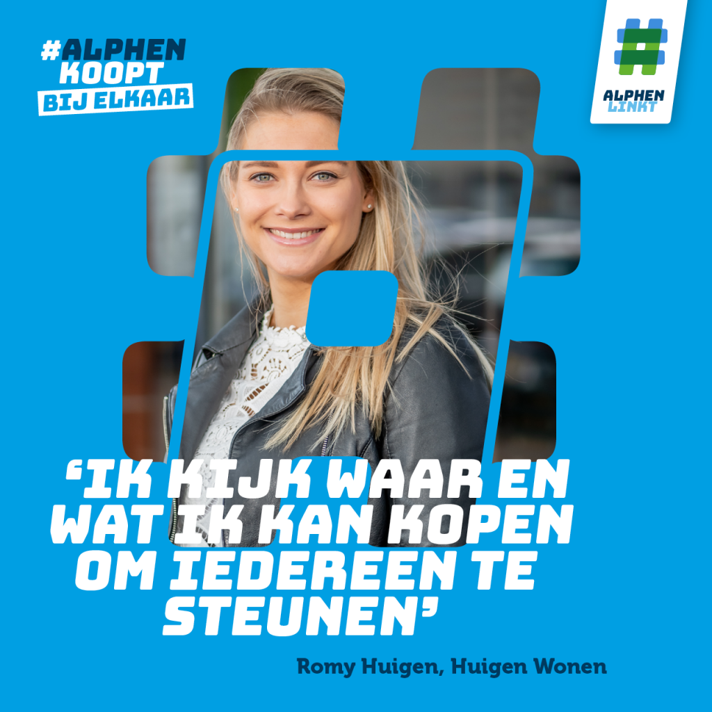 Want juist nú is het belangrijk om de lokale economie te stimuleren en de plaatselijke ondernemers een handje te helpen. Vereniging Ondernemingen Alphen aan den Rijn (VOA), Economic Development Board Alphen aan den Rijn (EDBA), Alphen Marketing, Centrummanagement, Commercieel Vastgoed Centrum Alphen (CVCA) en Vereniging Ondernemingen Centrum (VOC) sloegen de handen ineen en gaven ons de opdracht tot het ontwikkelen van een bewustwordingscampagne onder de vlag van #AlphenLinkt (overigens ook uit onze koker).
