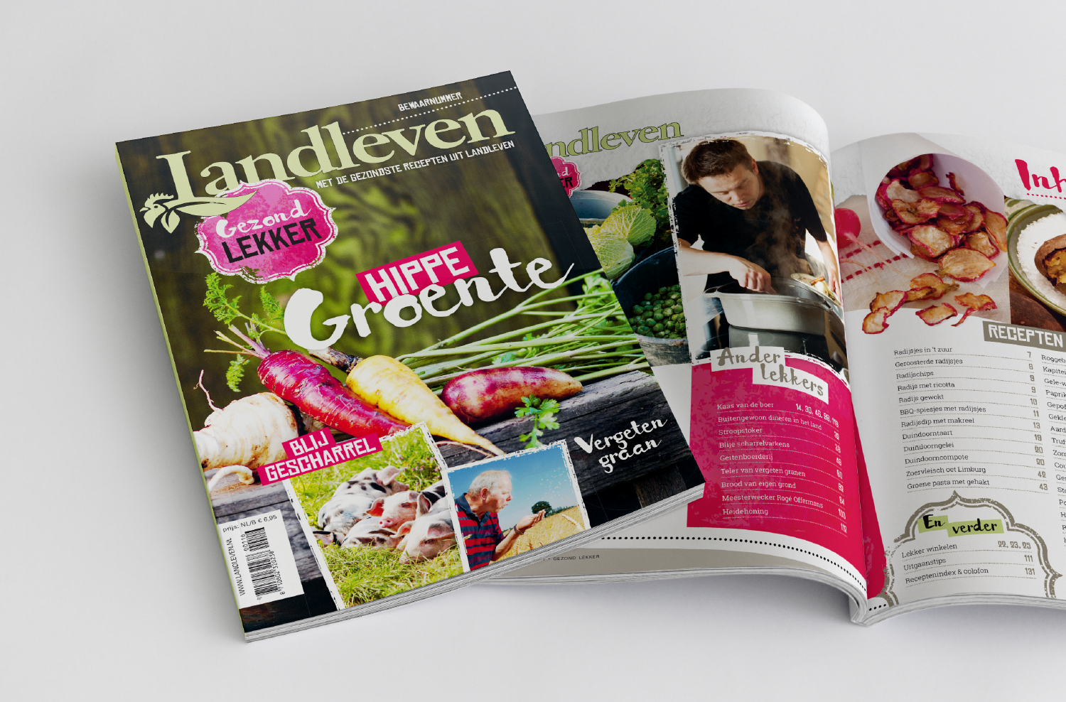 Naast reguliere edities geven wij ook een aantal bewaarnummers mooi en inspirerend vorm, zoals deze Landleven Gezond Lekker.