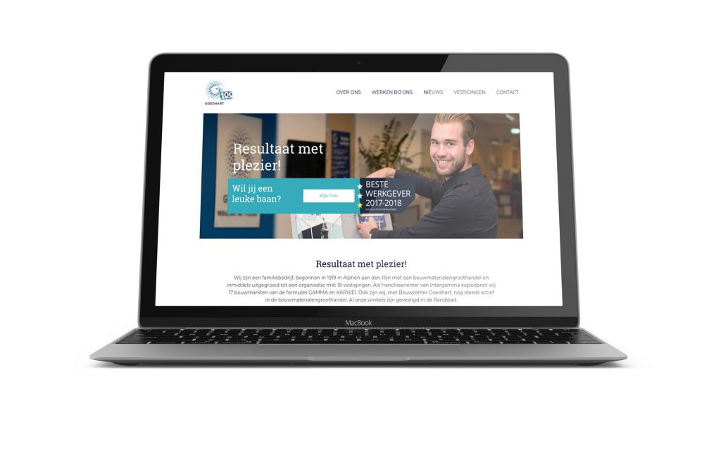 Goedhart is een familiebedrijf, begonnen in 1919 in Alphen aan den Rijn met een bouwmaterialengroothandel en inmiddels uitgegroeid tot een organisatie met 18 vestigingen. Als franchisenemer van Intergamma exploiteren zij 17 bouwmarkten van de formules GAMMA en KARWEI. Allemaal in de Randstad. Ook zijn ze, met Bouwcenter Goedhart, nog steeds actief in de bouwmaterialengroothandel. Het is dan ook niet verwonderlijk dat er meer dan 900 mensen werken en dat er voortdurend vacatures zijn die vervuld moeten worden. Wij maakten een nieuwe corporate website met als belangrijkste functie: personeelswerving.