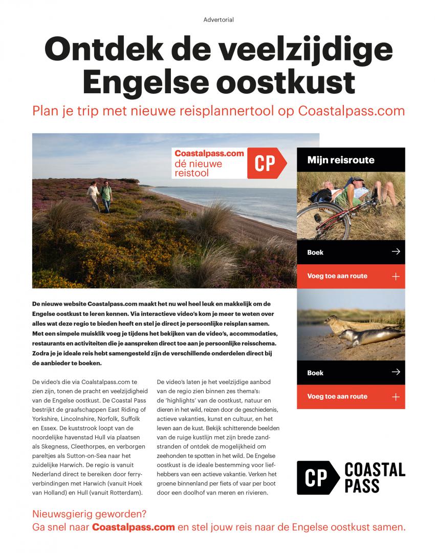 Ook onderstaande advertentie en advertorial met handige informatie en mooie foto’s ontwierp VRHL voor Coastal Pass. Deze worden in relevante magazines geplaatst om potentiële reizigers te informeren en enthousiasmeren.