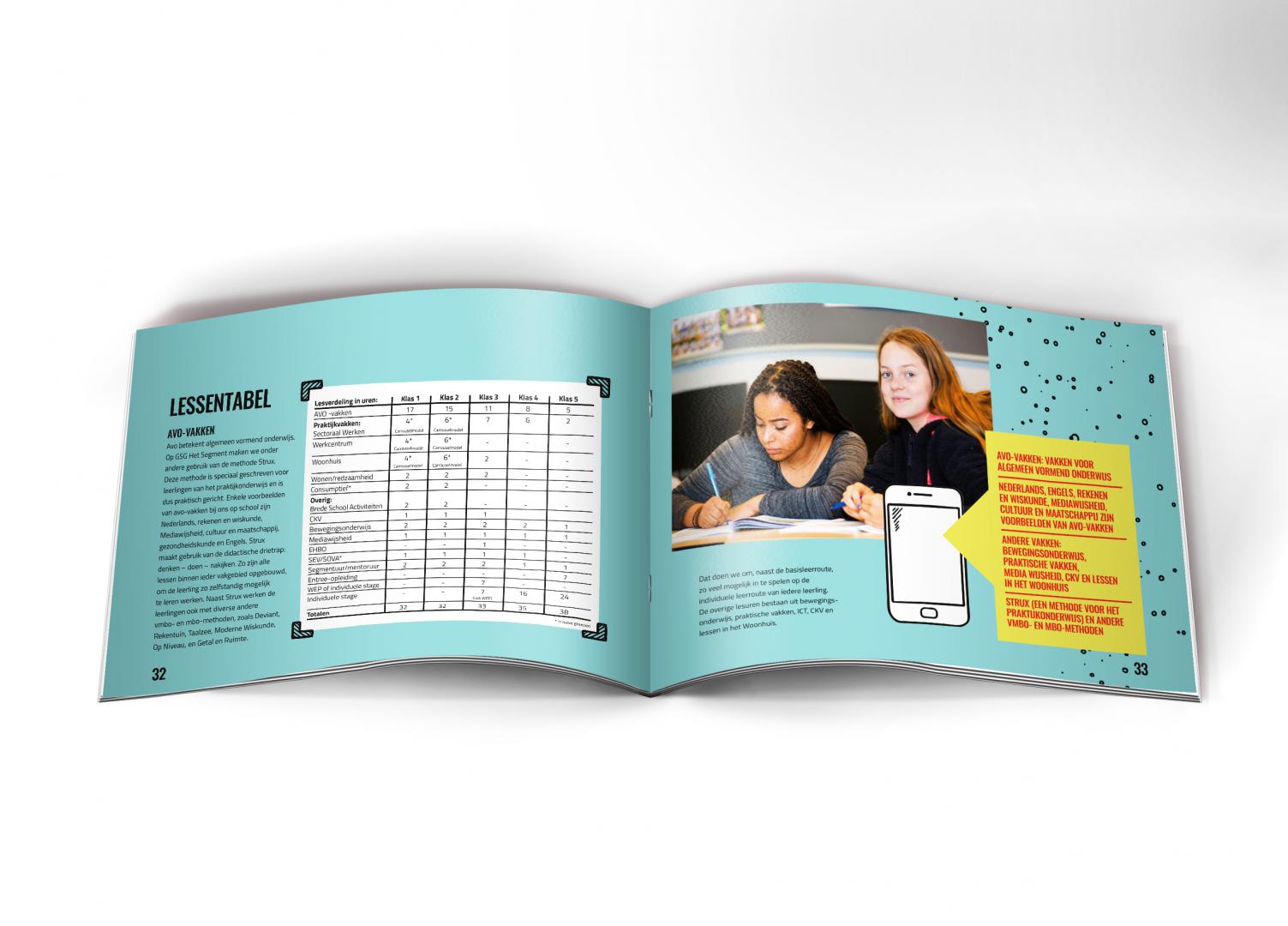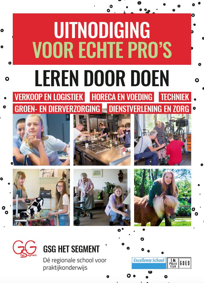 Wonen, werken, burgerschap, leren en vrije tijd. Dit zijn de thema’s waar praktijkschool GSG Het Segment haar leerlingen op voorbereidt. Het speciale onderwijs richt zich op leerlingen van 12 tot en met 18 jaar die moeite hebben met leren op de traditionele manier. De leerlingen hebben daardoor tijdens het basisonderwijs een achterstand opgelopen. Door entree- en brancheopleidingen laat GSG Het Segment hen kennis maken met de praktijk. Aan VRHL de uitdaging om hun verouderde schoolgids in een nieuw jasje te steken!