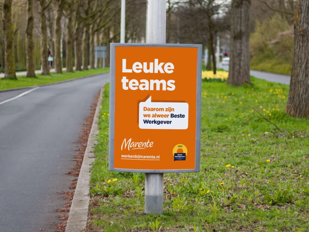 Nieuwe collega’s zijn in de zorg altijd welkom en daarom vroeg Marente ons om een awareness-campagne te starten. De boodschap: ‘Marente is alweer Beste Werkgever!’
