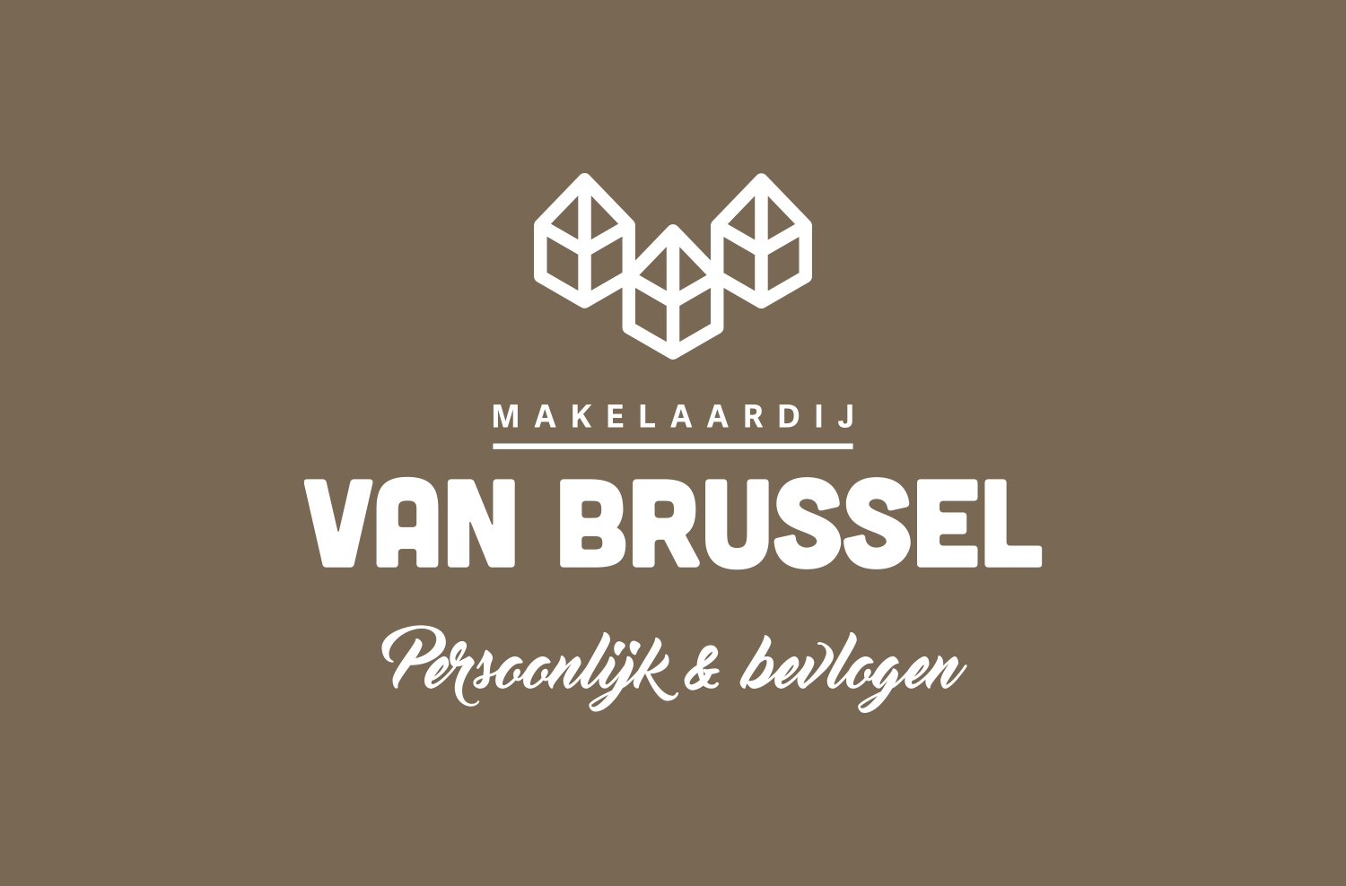 Het logo is opgebouwd uit drie huisjes, de naam ‘Makelaardij Van Brussel’ en de ondertitel ‘Persoonlijk & Bevlogen’. Een duidelijk en strak ontwerp!
