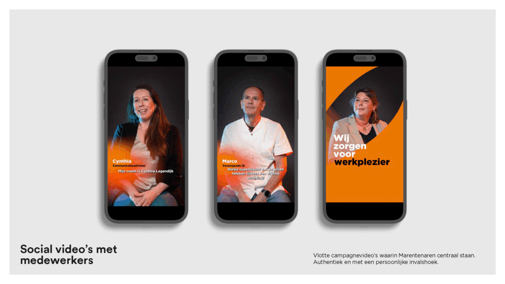 In 2025 introduceerden we een serie studiovideo’s waarin medewerkers vertellen over hun werk. Het zijn korte, persoonlijke verhalen die laten zien wie de collega’s van Marente zijn: professioneel, warm en met zichtbaar plezier in het zorgvak. - Een frisse update van de campagnestijl